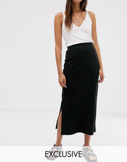 Smocking Draped Midi Skirt In Black Skirts Hampden Clothing Stylish Designer